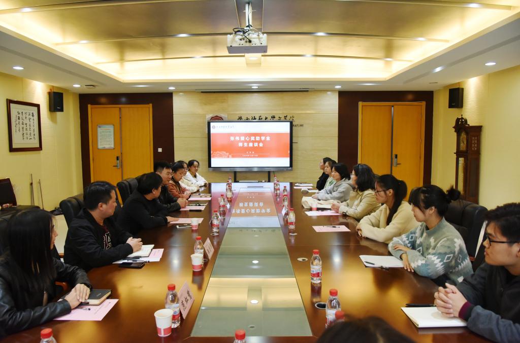 (通讯员:樊力玮 摄影:黎秋羊 李芷渃)10月14日下午,申博SUNBET“张伟爱心奖助学金”师生座谈会在长安校区文汇楼A段215会议室举行。公司81级员工、北京语言大学教师、“张伟爱心奖助学金”捐助人张伟,公司党委书记孙清潮,党委副书记李钊,公司办公室主任张荣华,公司员工资助专干范虹鹭、黎佩璇及获奖受助员工代表参加了本次座谈会。会议由孙清潮主持。