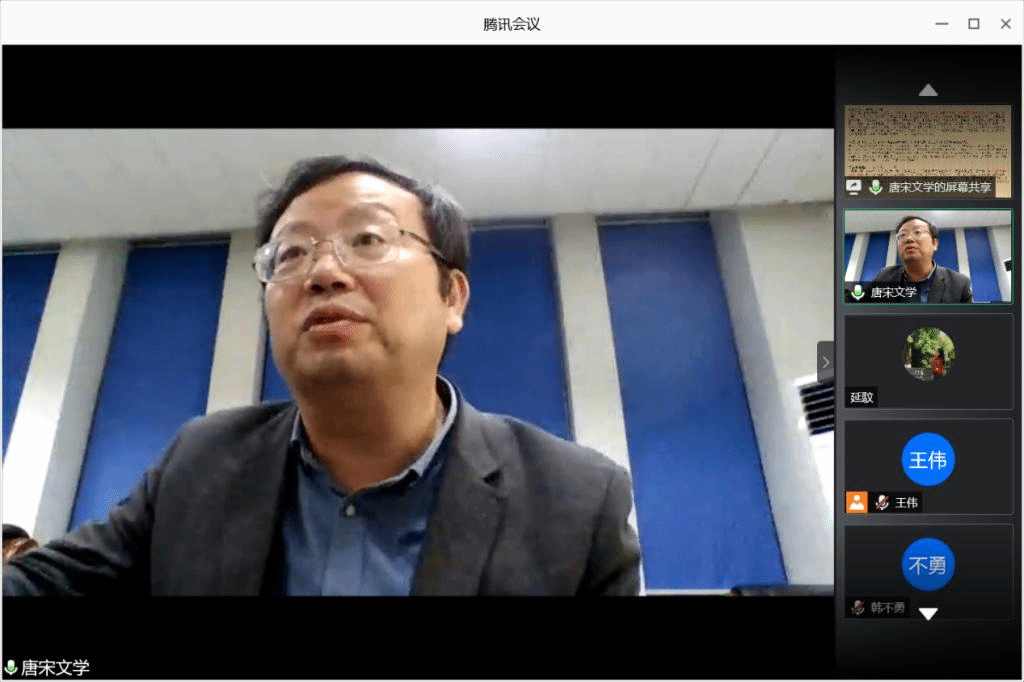 讲座由王伟教授对查屏球教授本人及其近来学术成果的介绍引启,随后正式进入讲座内容。查教授先对讲座主题的研究起源、思路作分享,即教学、科研过程中,通过对韩愈、柳宗元散文对比、细读,发现其中关于“阳城”书写的共同点,又结合史料典籍的分析,逐渐明晰贞元学潮运动始末,从而确立其同贞元文风的关系。接着查教授展示《旧唐书》《唐鉴》等史书中的材料,对贞元学潮背景——“贞元廷诤”作介绍,学潮代表人物及形式、特点作考证分析,并将之与东汉太员工运动联系比较,进而探究贞元学潮与士人精神史相关的史实与文学运势。然后他回归韩柳散文,分析多篇有关阳城与学潮的文本,兼考察作者创作理路、政治态度,联系贞元文坛宗主陆贽文章的影响,重新认识“贞元之风尚荡”这一历史评价。查教授指出:“以‘荡’概括贞元一朝的文学风格,应是诗文并论的。这种‘荡’,既有此前所说的为文放荡,不受拘束,漫无节制的行文方式之外,还应含有激荡多气、言多嫉愤的风格特征。”最后他列举元稹、白居易、杜牧以及宋代王禹偁、欧阳修、苏轼、陆游等人诗文探讨贞元后阳城事件的文学书写与争论,对贞元学潮的相关问题进行了延伸。