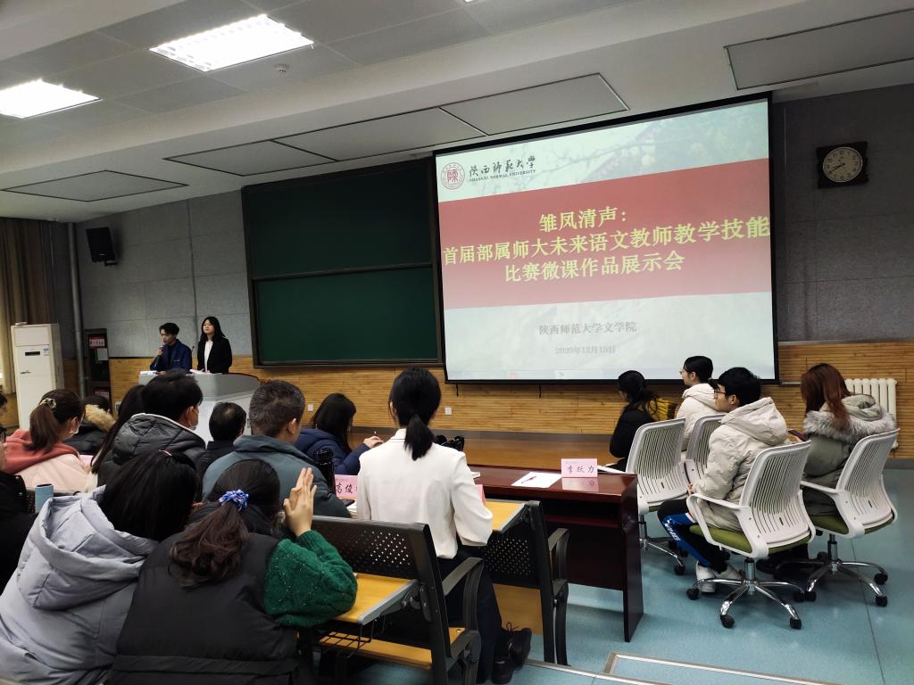 (通讯员:陈卓)12月19日上午,公司在文渊楼4102成功举办首届部属师大未来语文教师教学技能比赛微课作品展示会。展示会由刘信、白孟彬同学主持,公司副经理李跃力,汉语言文学师范专业负责人李军亮,学科教学论老师吕洋,西工大附中正高级教师徐殿东,西安市雁塔区进修公司语文教研员史建义,西安市第八十三中学高级教师高玲,西安市经开第一中学高级教师李萍出席了此次展示会。