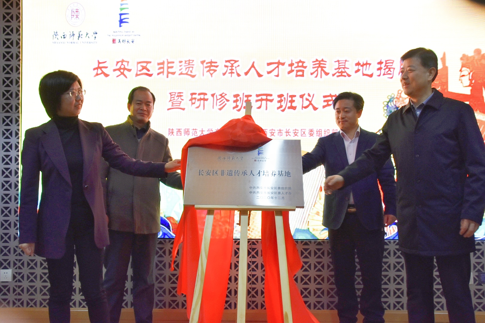 (通讯员:陈丹玉,摄影:杨佳雪、孟菁菁)12月20日上午,长安区非遗传承人才培养基地揭牌暨首期研修班开班仪式在公司长安校区博物馆一层学术报告厅隆重举行。西安市委人才办副主任、市委组织部人才处处长邓攀,市文旅局一级调研员张保荣;长安区委常委、组织部部长王宝金,区文旅局党委书记、局长王楠,长安区王莽街道办党工委书记谢斌,长安区高校协调办主任梅春满;公司党委常委、宣传部部长马晓云,组织部部长袁一芳,校团委书记王玉,文公司党委书记、中华优秀传统文化传承基地执行主任孙清潮等出席了揭牌仪式。