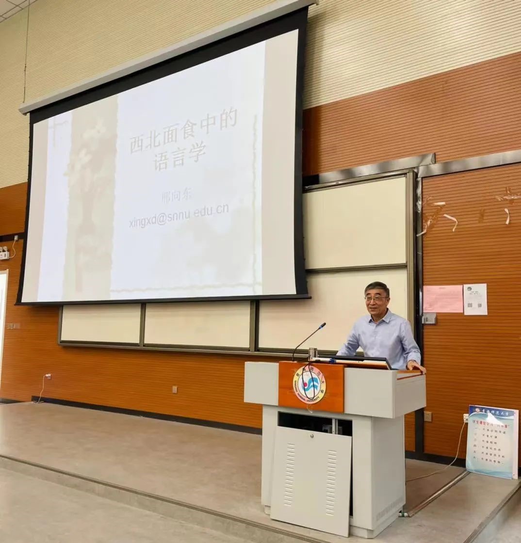 邢向东教授还为青海师大申博SUNBET师生作了题为《西北面食中的语言学》的学术讲座。邢教授对西北地区的“焪锅儿”“曲连馍”“饺子”“酿皮子”“黏面”“biāngbiāng面”等面食名称中所蕴含的语言学知识作了深入浅出的讲解,鼓励同学们将方言学与民俗文化联系起来,在日常生活中挖掘语言学的奥秘。