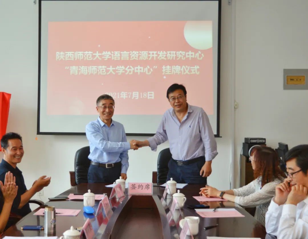 本次揭牌仪式由邢向东教授与刘晓林教授代表双方签订合作协议,并由邢向东教授与赵海兴教授共同为陕西师大语言资源开发研究中心青海师大分中心隆重揭牌。