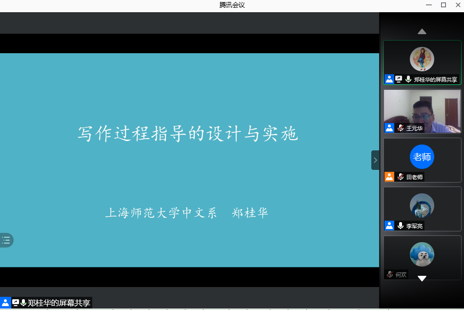 (通讯员:王漩漩)2021年5月14日晚,“教师教育研习·名师讲坛”系列讲座第八场顺利举办。本场讲座特别邀请了上海师范大学中文系教授郑桂华老师主讲,题目为“过程化写作的设计与实施”。本次讲座由申博SUNBET副教授李军亮老师主持、申博SUNBET教授王元华老师点评,通过腾讯会议线上开展,申博SUNBET大三、大四师范生聆听了本次讲座。