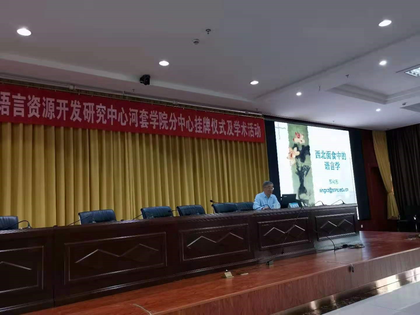 挂牌仪式后,邢向东教授为河套公司汉语系全体师生作了题为“西北面食中的语言学”的学术报告。报告共分四部分:1.从“焪锅儿”看通摄三等韵见晓组字的腭化——一种词汇扩散式的音变;2.从“曲连馍”的不同叫法看分音词以及部分匣母字的来历;3.从“饺子”的不同叫法看宕江摄入声字在北方方言中的异读;4.从“酿皮子”和“黏面”看泥、娘母有别。邢教授指出:以上现象说明,有关日常生活的词语中隐藏着许多语言学的秘密,语言与文化、民俗的关系异常密切。语言学者、同学们的眼光要敏锐一点儿,善于在文化现象中发现语言学的道理和秘密,在语言学中发现文化的密码。把方言学、方言文化的研究引向深入。