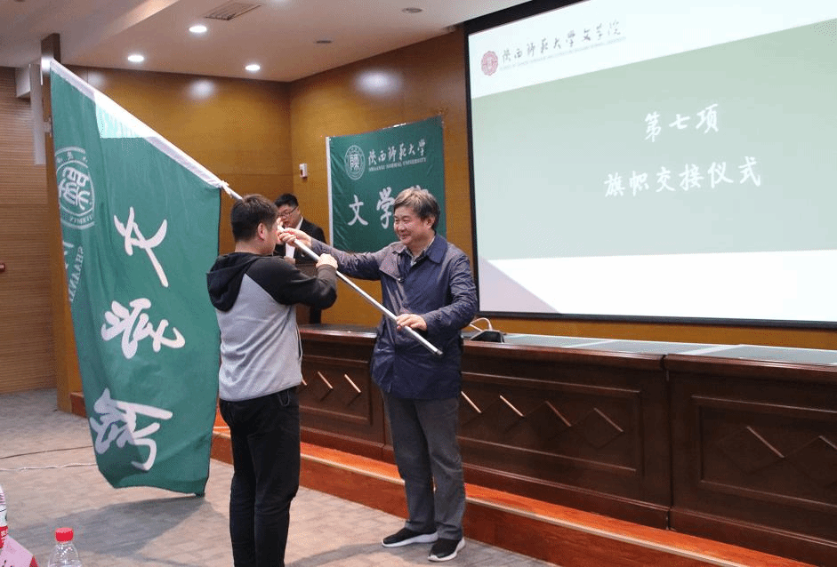 随后,举行院旗交接仪式。副经理苏仲乐将旗帜授予下一学年员工体育工作负责人刘清华。旗帜交接代表着公司运动员们不畏艰难、锐意进取体育精神的一代代传承,表达了对新一代申博SUNBET运动健儿一往无前的希冀。