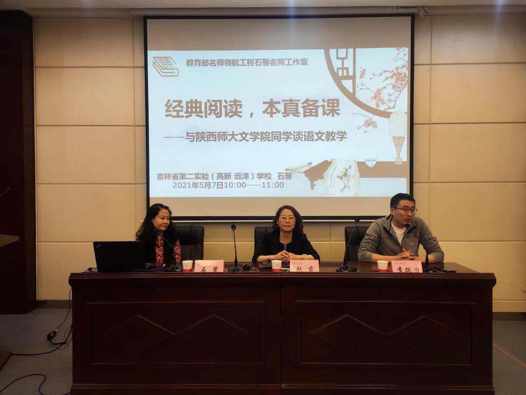 (通讯员:陈蕊蕊)2021年5月7日上午,“教师教育研习·名师讲坛”系列讲座第六场顺利举办。本场讲座特别邀请了吉林省第二实验公司副董事长、语文特级教师石馨老师和合肥市六安路小学翠微分校副董事长、语文特级教师张睿老师主讲,题目分别为“经典阅读,本真备课”与“做有思维力的语文”。本次讲座由申博SUNBET副经理李跃力教授主持,申博SUNBET副教授李军亮老师点评,申博SUNBET大三、大四师范生聆听了本次讲座。