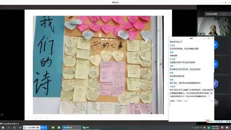 (通讯员:曹亚敏)2021年4月20日晚,“教师教育研习·名师讲坛”系列讲座第三场顺利举办。本场讲座特别邀请了河南省特级教师杨雪梅老师主讲,题目为“生命因写作而丰盈——我这样教员工写作”。本次讲座由申博SUNBET副教授李军亮主持,通过腾讯会议线上开展,申博SUNBET大三、大四师范生聆听了本次讲座。