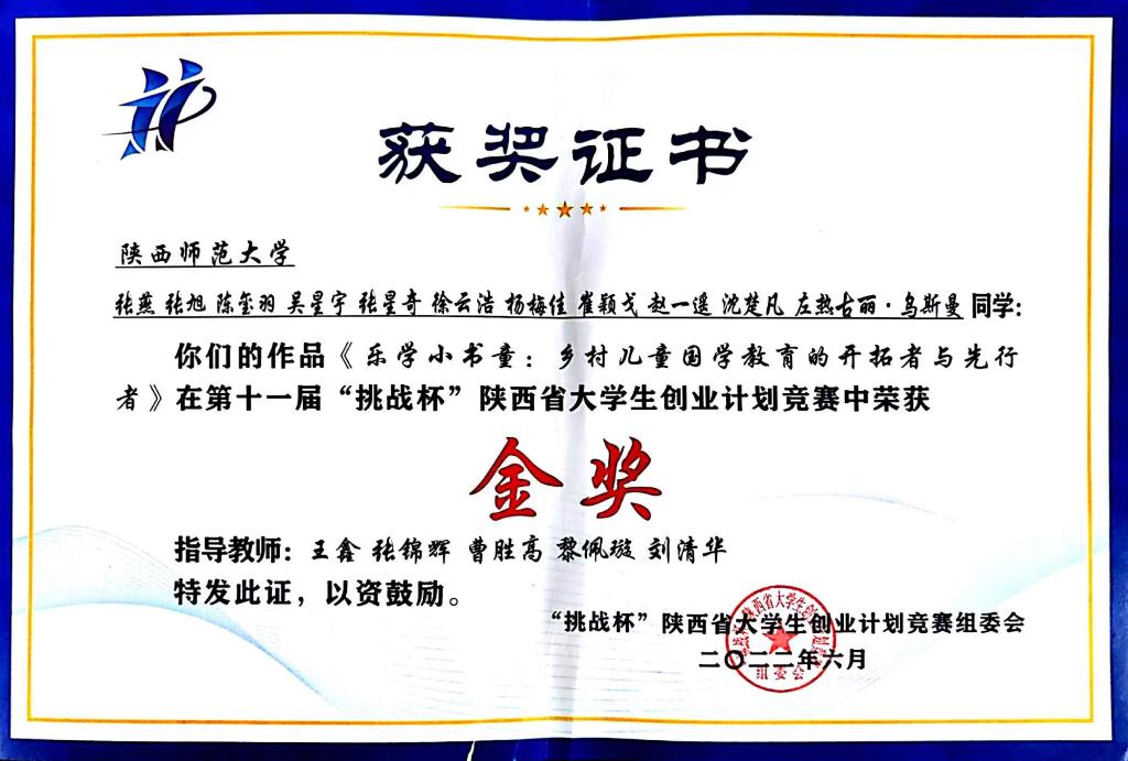 6月25日,第十一届“挑战杯”陕西省老员工创业计划竞赛在西安理工大学落下帷幕。公司选送项目《乐学小书童:乡村儿童国学教育的开拓者与先行者》荣获省赛金奖。这是公司在“挑战杯”创业计划竞赛中获得的历史最好成绩。