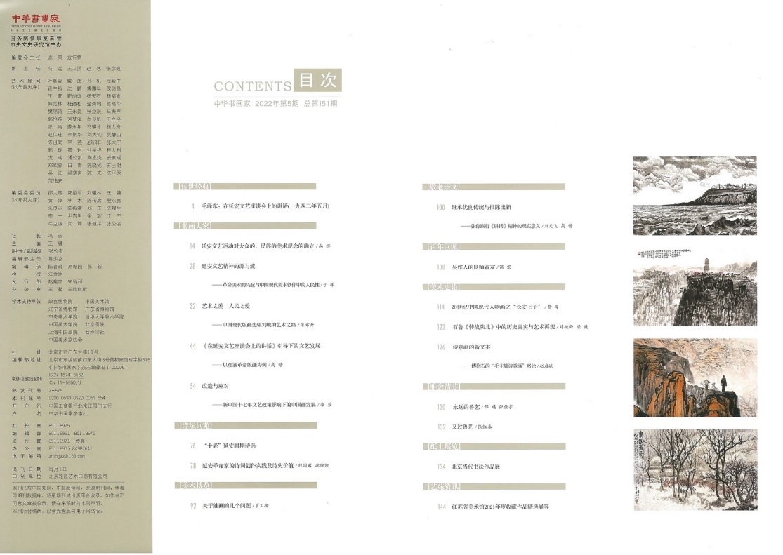 《中华书画家》杂志在2022年第5期(总151期)推出“纪念《在延安文艺座谈会上的讲话》80周年”专刊。程国君、李继凯两位教授的文章《延安革命家的诗词创作及诗史价值》被杂志配书法作品全文转载。《延安革命家的诗词创作及诗史价值》发表于2020年第3期的《中国社会科学》,文章认为延安革命家诗词是中国现代文学史上极其重要的文学现象,不仅开拓了中国旧体诗创作革新的新方向,也是20世纪中国诗词发展的重要源流之一,其深刻的历史内涵和崇高美学风范是现代文学中的“钢和钙”。正确认识和重新评价延安革命家诗词创作,不仅有助于丰富完善中国现代文学的研究格局,而且为新时代坚持以人民为中心的创作导向提供了重要指引和精神坐标。