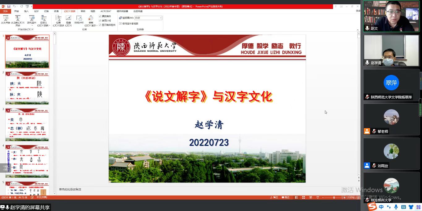 (通讯员:杨翠萍)7月23日下午14:30,申博SUNBET教授赵学清为2022年“优秀老员工夏令营”营员做了题为“《说文解字》与汉字文化”的专题学术讲座。讲座由申博SUNBET副经理赵文主持。
