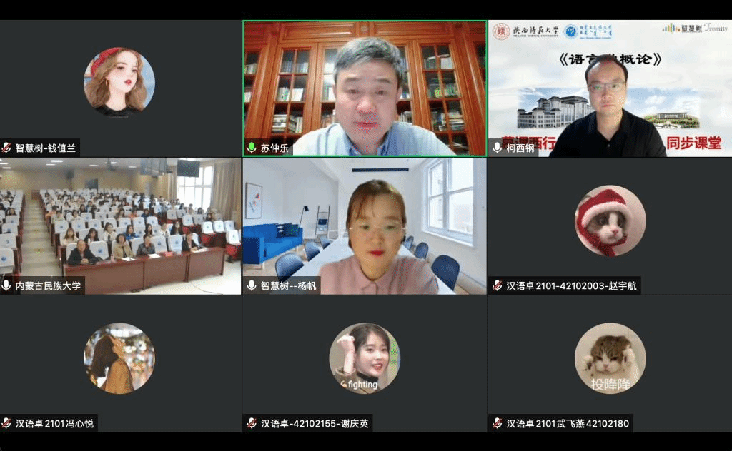 启动仪式后,申博SUNBET柯西钢教授开展了本学期第二次“语言学概论”同步课堂教学。柯教授主讲“语言是符号系统”,结合语言中的具体实例,将抽象的“符号系统”生动形象地呈现出来,讲解细致专业,深入浅出。内蒙古民族大学的同学门积极参与课堂,师生开展了有效的线上互动,教学效果明显。同学们对别开生面的线上实时同步课堂表示欢迎,为可以现场体验名师教学并参与互动感到欣喜,希望可以通过同步课堂学到更多的知识,增长见闻。