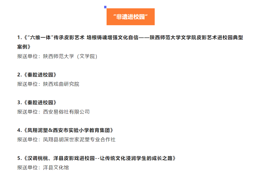 (通讯员:党玮)2022年12月15日,陕西省文化和旅游厅公布了“触摸历史 创新传承——非遗融合创新与传承发展优秀案例”入选名单,在“非遗进校园”类十大典型案例中,公司《“六维一体”传承皮影艺术培根铸魂增强文化自信——申博SUNBET皮影艺术进校园典型案例》荣登榜首,是陕西高校唯一入选案例,为公司立德树人重要成果之一。