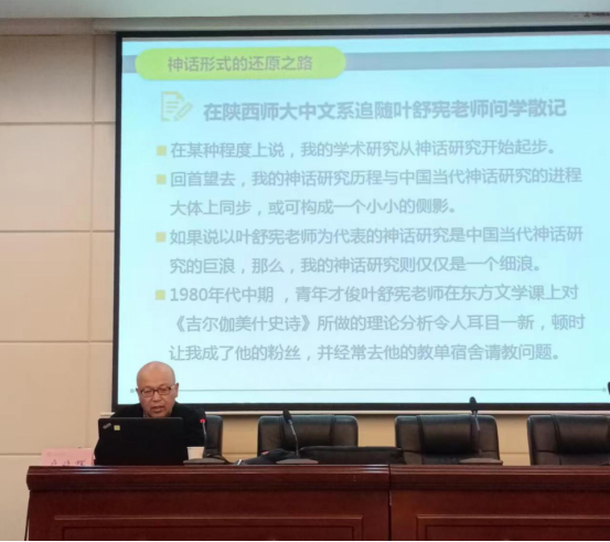户晓辉教授以自己在申博SUNBET时向叶舒宪老师学习的经历为起点,讲述了他的神话学研究历程,从“学习态度、学习方法、外语学习及学术翻译,跨学科研究”几个方面向同学们分享了他的学习科研心得,讲述了自己写作《神话形式的还原之路》这本书的缘由,以及该著作的主要研究内容与方法。户晓辉教授说:“简要地回顾与反思我走过的神话研究之路,与其说是为了记录个人的神话研究之路,不如说是为了从理论和方法论上总结并反思当代中国神话研究以及世界神话学研究的一条共同理路。”