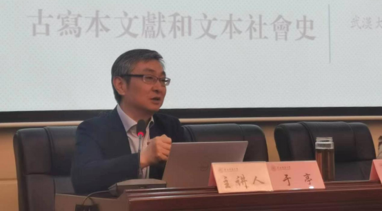 首先于亭教授回顾了传统文献学的认识结构,强调传统文献学的核心是“存真复原”。从问题出发,于教授对李白《惜罇空》与《将进酒》、陶渊明“刑天舞干戚”、《庄子·天运》等问题分析探究,对中古写本的文本面貌做出了基本展现,并结合对玄应《一切经音译》的研究,对写本与刻本、作者与读者之间的关系进行了深刻探讨。