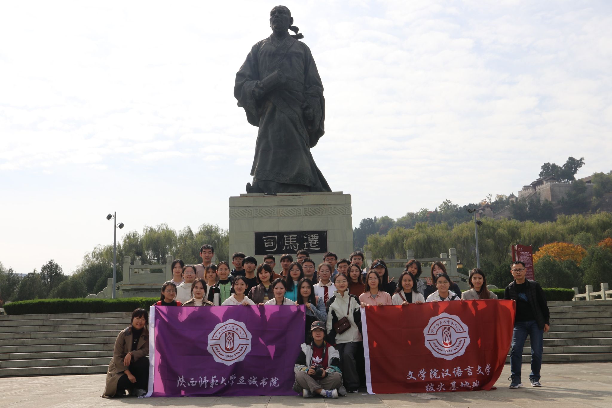 21日上午,同学们从西安出发,前往韩城司马迁祠。“功业追尼父,千秋太史公”,走过十二本纪广场,观瞻司马迁像,沿着长长的石路拾阶而上,同学们瞻仰司马祠,在松柏苍翠之间,仿佛听到了“史圣”的遗音。
