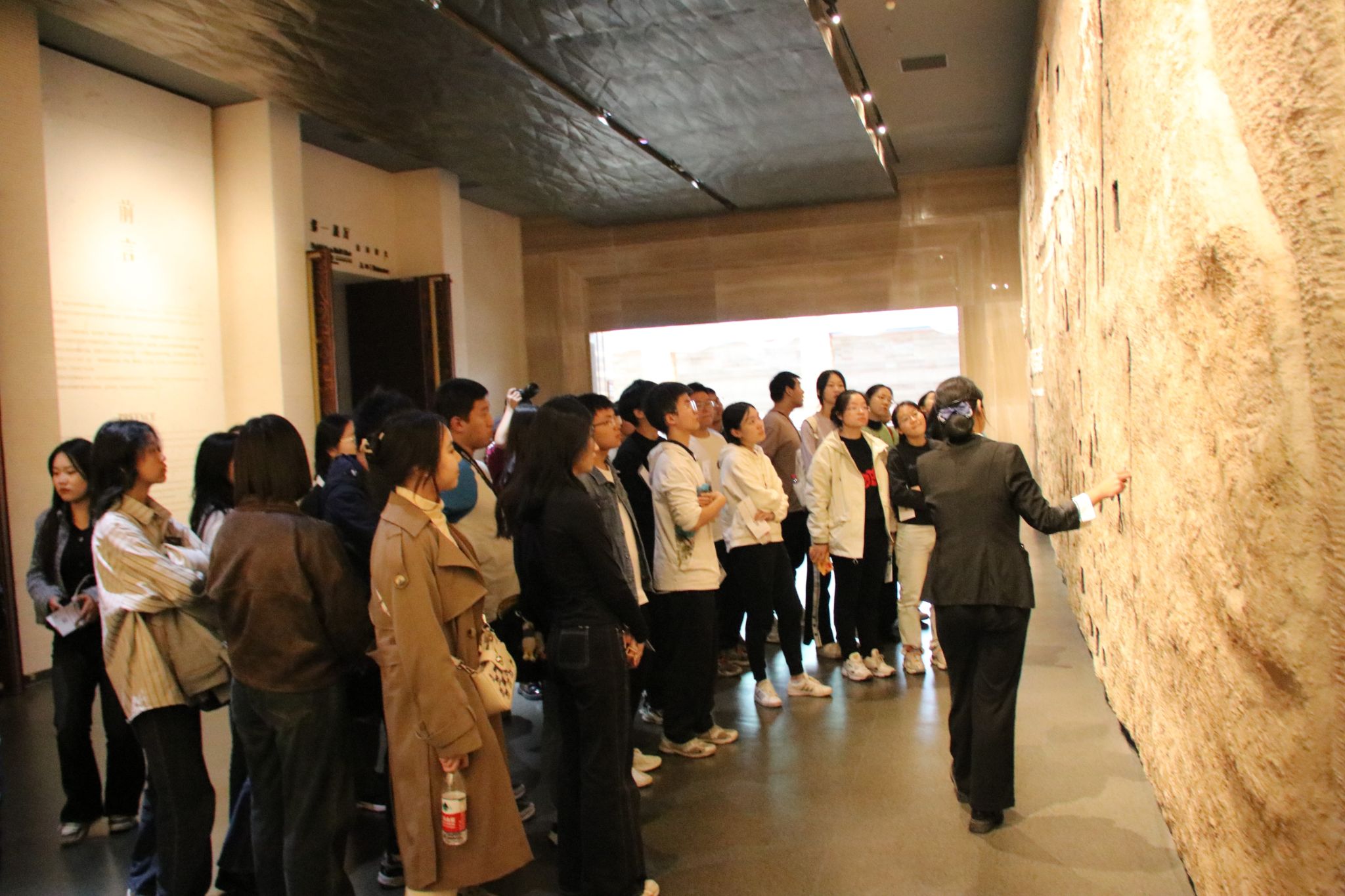 下午同学们来到梁带村芮国遗址博物馆。在周文明的边缘,这个往日不为人知的诸侯国因为一场考古发掘而重见天日。随着讲解员的解说,美丽神秘的古芮国渐渐揭开面纱,从历史的风尘中向同学们走来。青铜礼器、玉戈玉琮、黄金剑鞘……一件件珍贵精巧的文物中蕴含着文化的脉络和先人的智慧,让同学们感受到了悠长厚重的文明之源流。