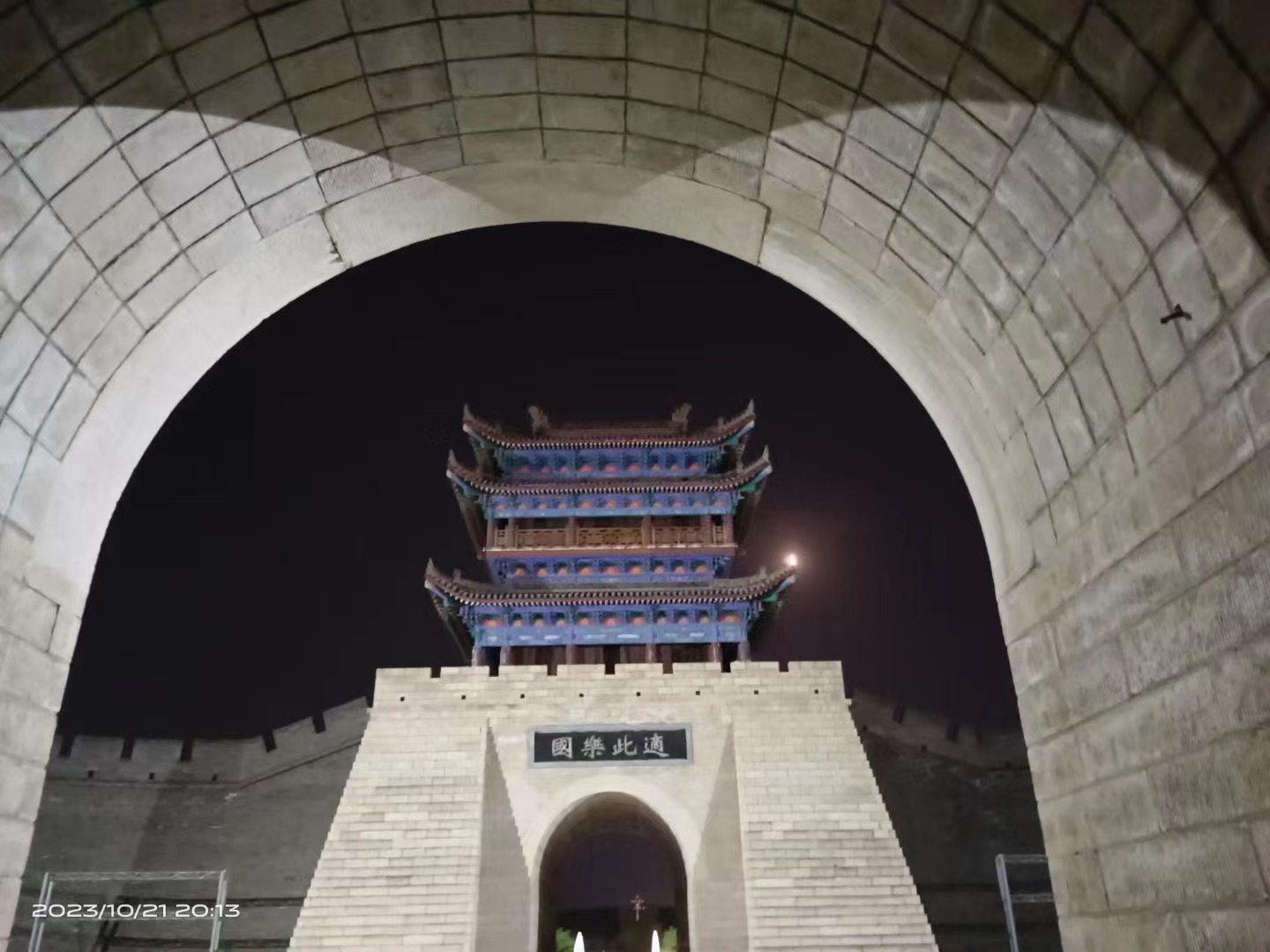 同学们自行漫步在老城街道中,感受历史的厚重气息与现代灯火的交织。老城尽头,夜晚的谯楼和尊经阁更显得无比庄重,牌匾上的“适此乐国”也讲述出了韩城人民的心声。