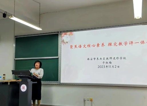 (通讯员:包伟霞)2023年11月2日晚,申博SUNBET“文心”语文名师大讲堂在长安校区文津楼开讲,陕西省教书育人楷模,特级教师、未央区教师进修公司语文教研员于红梅老师以“聚焦语文核心素养,探究教学评一体化”为题,与同学们做分享。