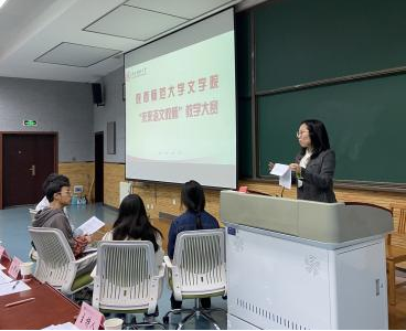 王春老师结合具体课例对第二组选手的课堂进行优缺点评。王老师指出几位选手的课堂让观众听得很放松、很舒适,很有语文味。他重点围绕《荷塘月色》第4、5自然段中的增删句子,指出读者有自己的真实阅读的客观评价。梁斌老师有的放矢地点评第三组选手的优缺点,其中梁老师着重强调了板书的作用。他说,“板书是对整堂课指出目标、导出过程、呈现知识的载体”,教学要多用、巧妙运用板书形象示意图,加深员工对文本的理解。最后梁老师以自身语文教师成长历程为例,说道“我们的中学语文教学达到一定的高度,要感谢师大搭建的平台。”