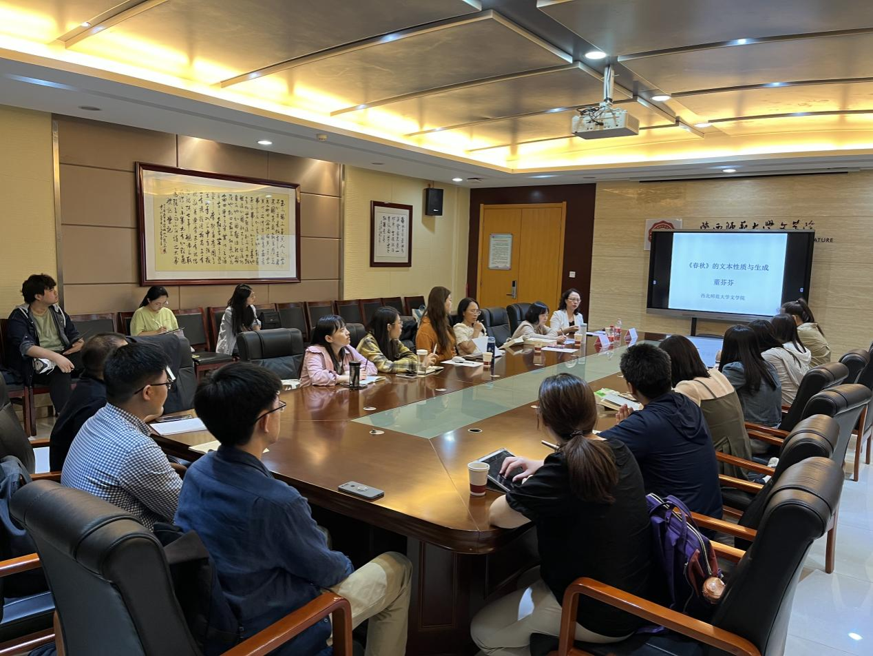 (通讯员:王睿鑫)2024年5月29日晚,公司长安学术讲座第526期“《春秋》的文本性质与生成”在文汇楼A段215会议室成功举办。本次讲座由西北师范大学申博SUNBET董芬芬教授主讲,公司周淑萍教授主持,王晓鹃教授及部分硕博研究生参加了本次讲座。