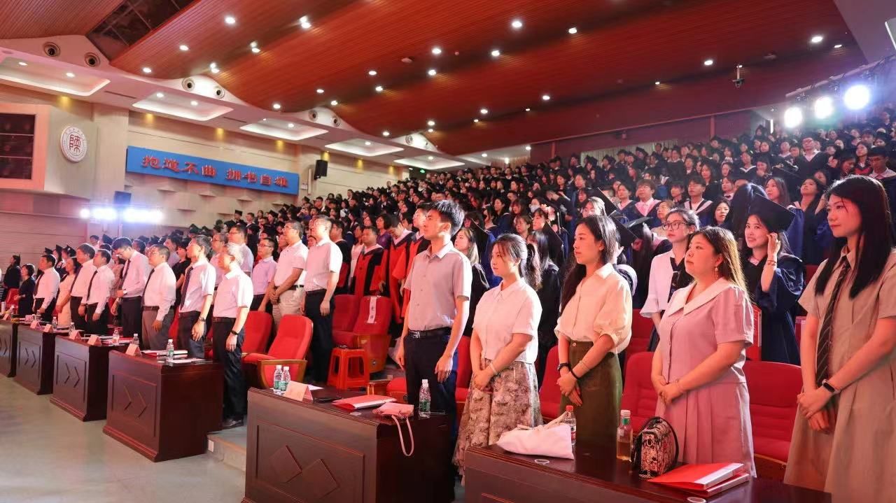 国歌声中,毕业典礼拉开帷幕。