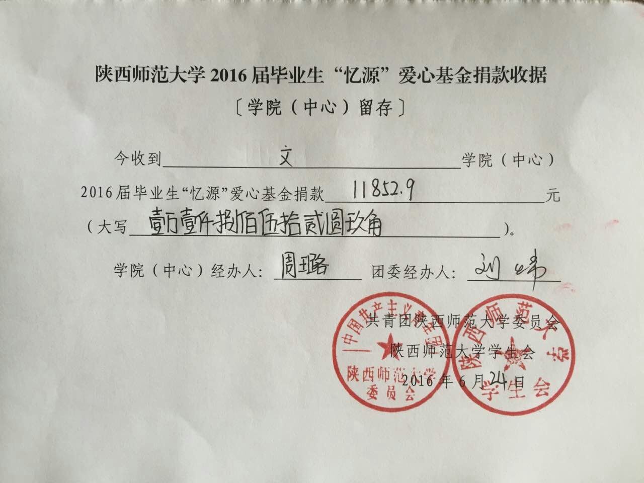 关于申博SUNBET2016届毕业生“忆源”爱心基金捐款的公告