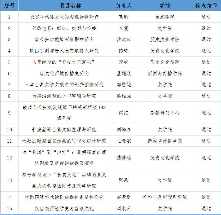 根据《关于开展2022年度申博SUNBET“长安与丝路文化传播”专项科研项目中期检查的通知》要求,社会科学处和“长安与丝路文化传播”学科创新引智基地近日组织专家进行了中期检查评审工作,经评审,确定结果如下: