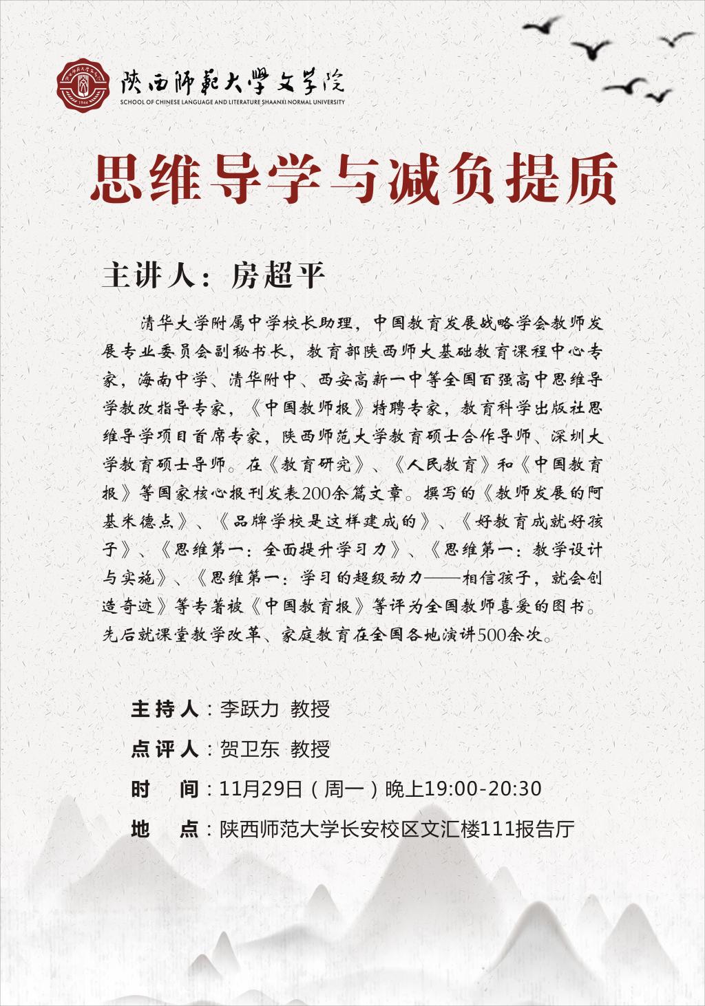 讲座:“思维导学与减负提质”