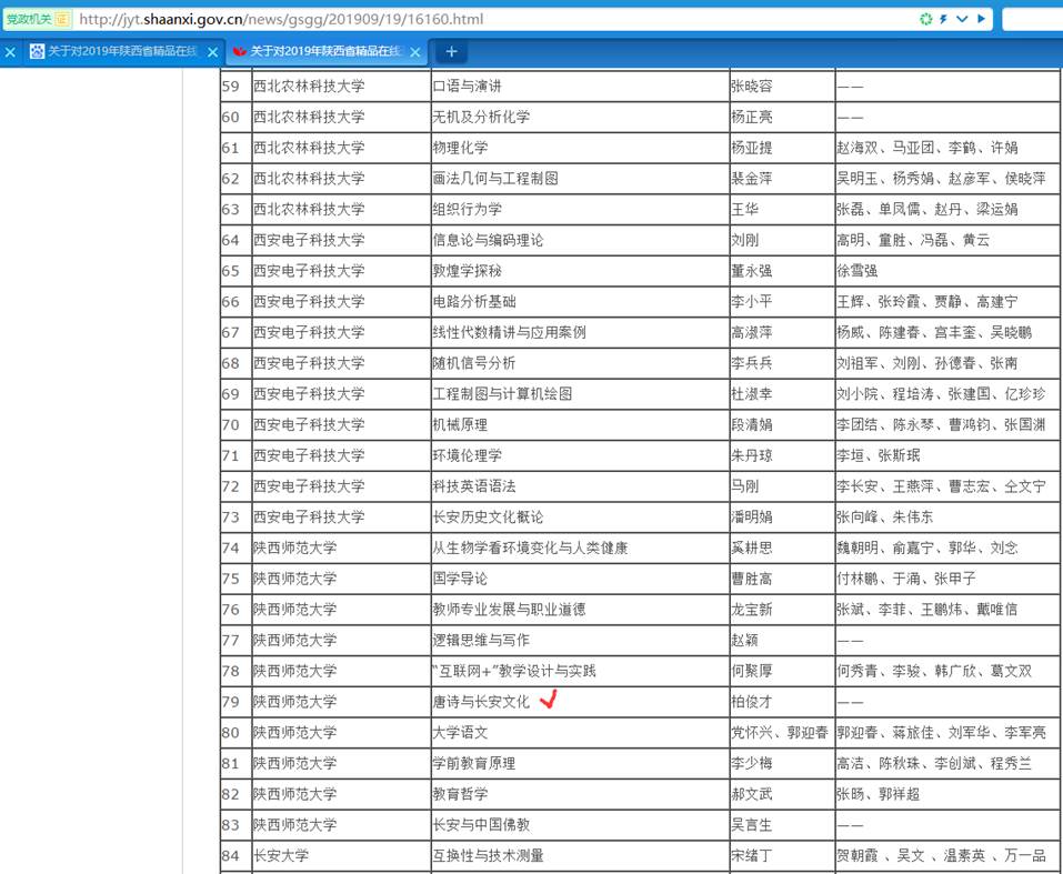 (图十三 《唐诗与长安文化》入选陕西省精品在线开放课程网络截图)