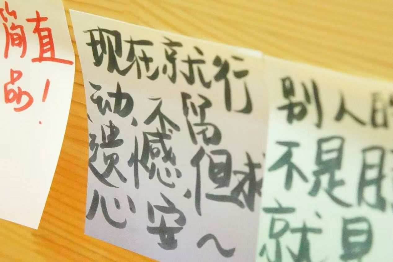 现场同学用画笔在画板上绘画笑脸,在画纸上存下掌印。想象云飞天外,圆圈圈出少年的炽爱,画笔勾下心海的蔚蓝。