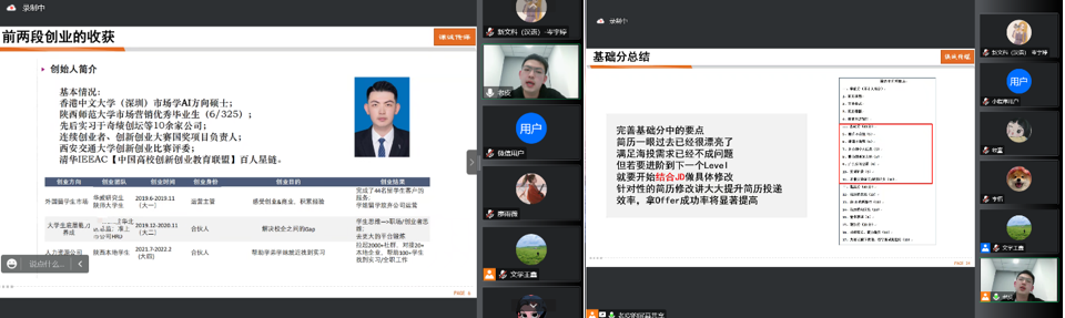 本次讲座内容包含三个部分。一是自身求职过程中的经验分享及反馈,二是深入分析简历制作的底层逻辑,三是对简历制作的指导和常见问题的纠正。皮千澄以自己两段创业的经历为例,强调职场思维转换与角色适应的重要性,同时从简历的制作原因和制作方法两方面分析简历的底层逻辑。他指出,简历并非个人荣誉证明书,而是自身与岗位适配程度说明书,要重视匹配和胜任的表达。此外,岗位逻辑、投递格式、简历页数、简历排版等问题值得注意;重复表述、奖项堆叠等常见错误也不容忽视。