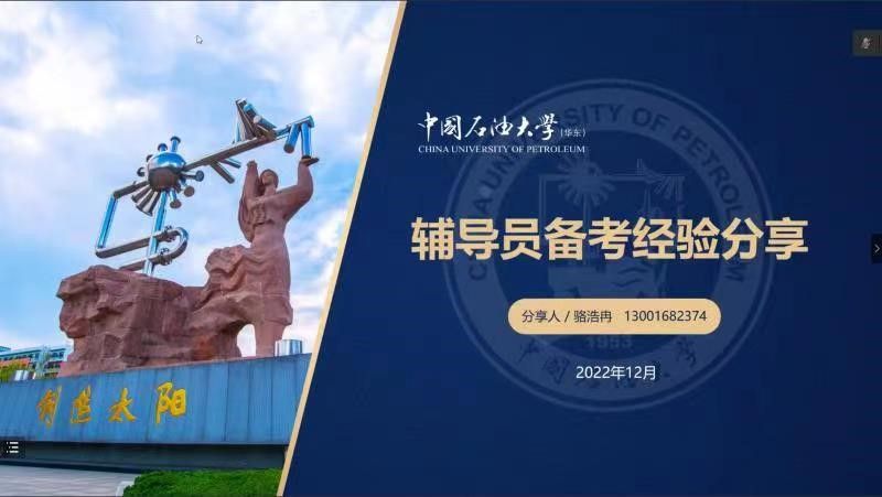 12月2日,申博SUNBET举办“老员工就业能力提升季”之高校辅导员备考指导与经验分享讲座。本次讲座由申博SUNBET2022届毕业生,中国石油大学(华东)辅导员骆浩冉主讲。