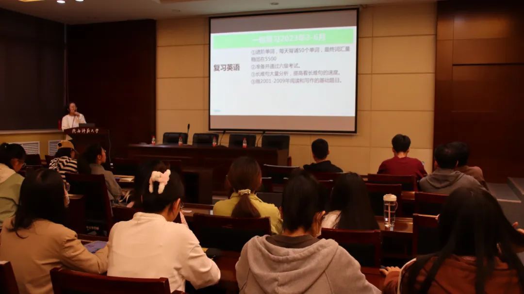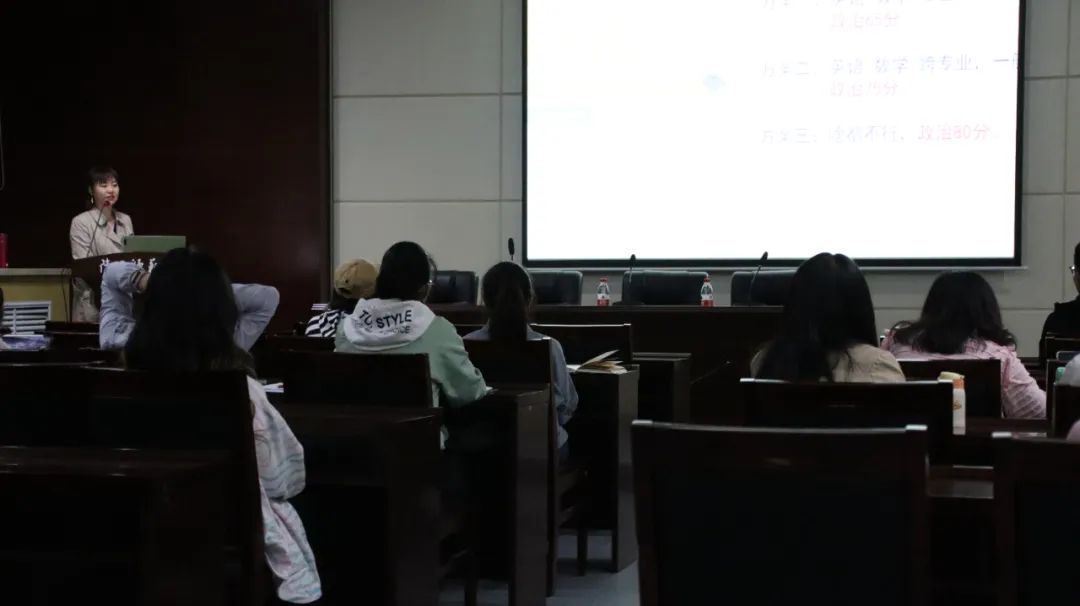 王娟乐老师从考研报考形势、考研英语题型、复习进度安排、题型分析及注意事项等角度切入,强调了知识积累的重要性并给予同学学习建议;徐阳老师则从考研政治大数据分析、真题命题规律分析、备考方法和建议分析三个方面进行分享,通过真题讲解为同学提供科学的备考方法和实用的做题技巧,同时指出了思维导图在政治复习中的必要性。两位老师针对英语、政治两门科目进行备考方面的解读分析,为同学们精准把握考查要点、科学制定备考策略提供了指导与帮助。