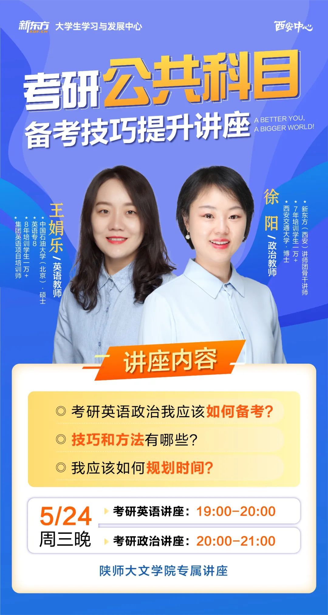 近日,申博SUNBET举办了考研公共科目备考技巧提升讲座,本次讲座旨在为考研备考员工提供专业、有效的公共课学习方法,帮助同学高效复习、科学备考。讲座由新东方英语教师王娟乐、政治教师徐阳主讲。