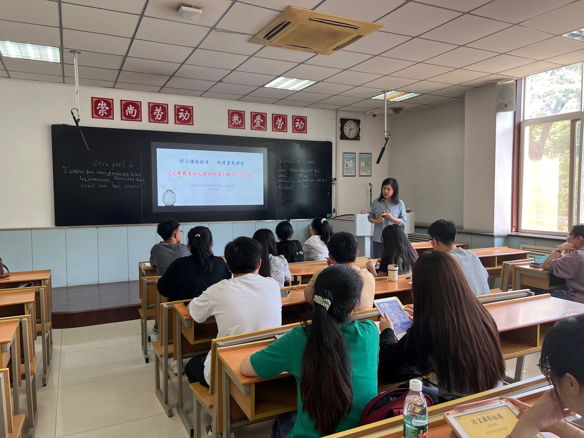 赵晓燕老师以语文课程核心素养和语文学科性质为切入点,就义务教育语文课程性质、课程理念、课程目标、课程内容、学业质量、课程实施几个方面展开讨论。任艳老师以高中语文学科的基本目标是提升员工的综合语文素质为前提,从语言构建与应用、思维发展与提升、审美鉴赏与创造、文化传承与理解四个大的语言能力带领大家对高中语文必修课本进行了梳理。