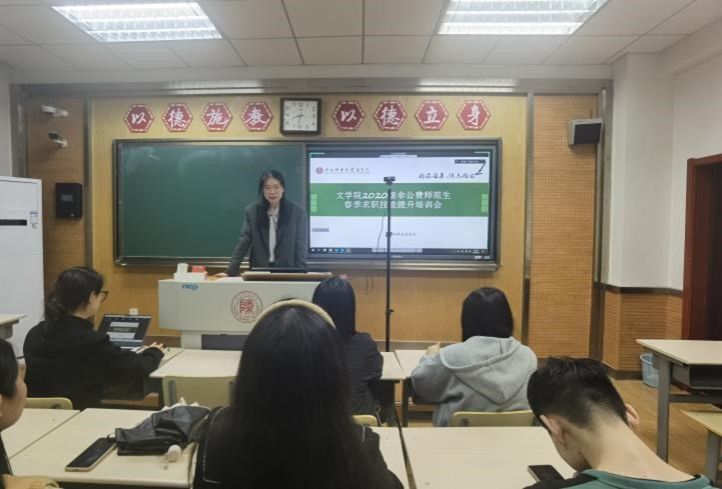 周文硕结合自己应聘国企和地方中学的经历,提出在求职阶段要多平台搜集就业信息,找准就业定位,助力高效高质量就业。陆茜瑜提醒在应聘公司时要关注招聘进度和笔面内容,教案设计可以适时与中学语文四大核心素养产生联结,体现专业水平。高小淑从公务员笔试备考、习题练习和面试准备三方面展开交流,提示在基础课程的学习中要善于利用网络资源,做好备考资料的汇总。